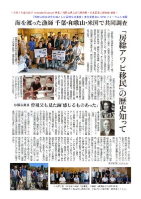 海を渡った漁師 千葉・和歌山・米国で共同調査