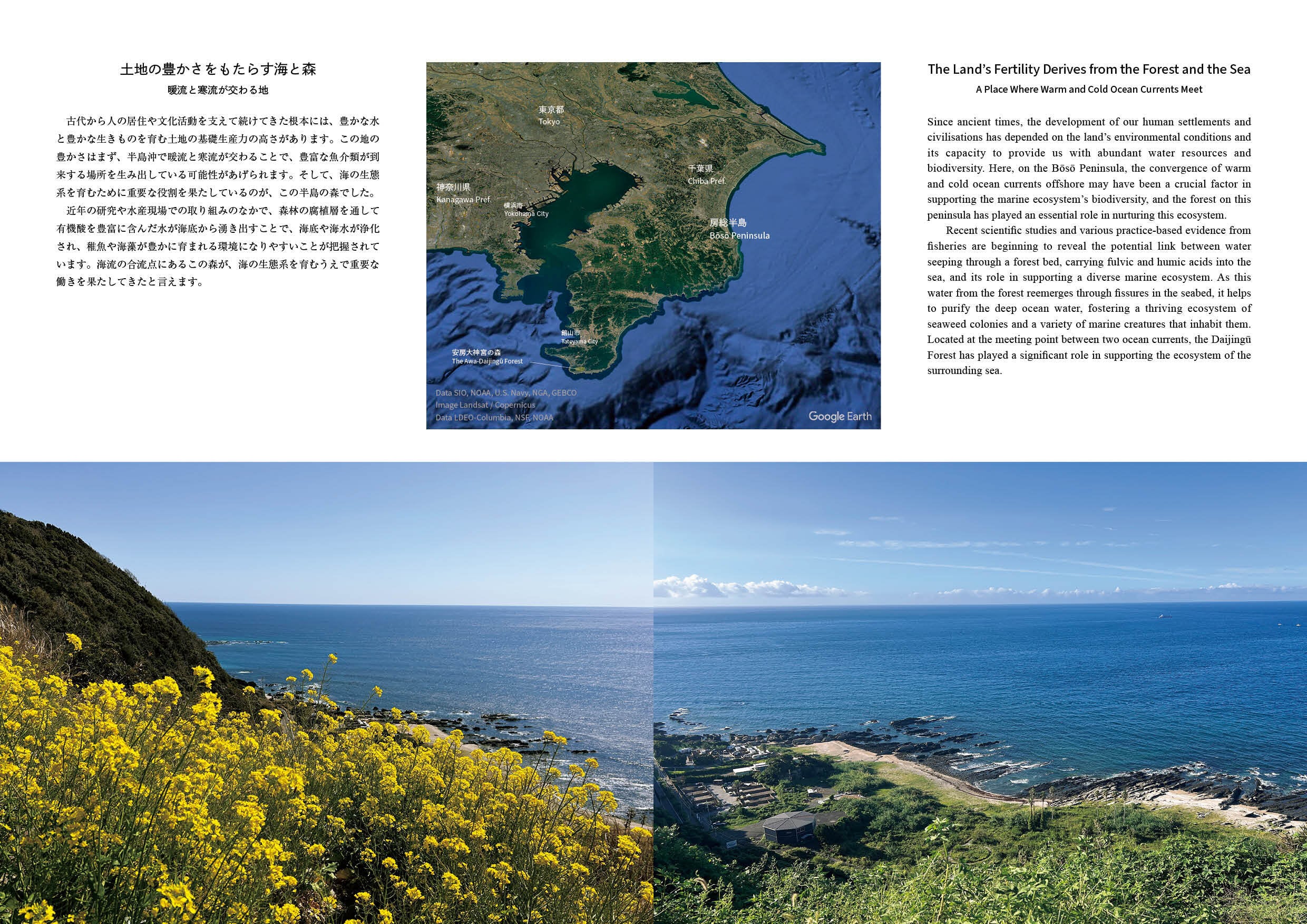 安房大神宮の森をもとに、森と海の関係、御神体としての磐座の意義、山の 尾根筋から水源をとる知恵等、古の人の造作や工夫を知り、